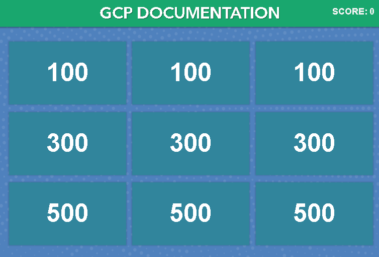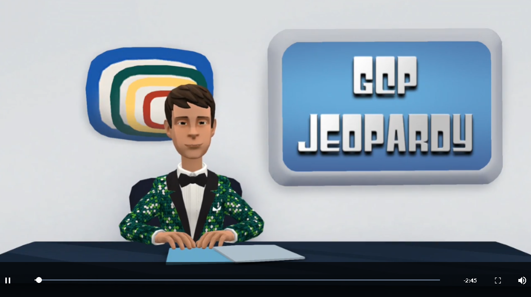 To further naviagate the content within GCP I developed a Jeopardy style game within Storyline as a content refresher. The game would begin with a Jeopardy style video introduction of characters that are present within the 8 scenarios found within the curriculum. 3D models and animation made within Plotagon, edited within Adobe Premiere, imported into Storyline for interaction capabilities, and then RISE for the course shell itself. Users would score points and then send a screenshot to the training team for a chance to win gift cards for the highest scores.